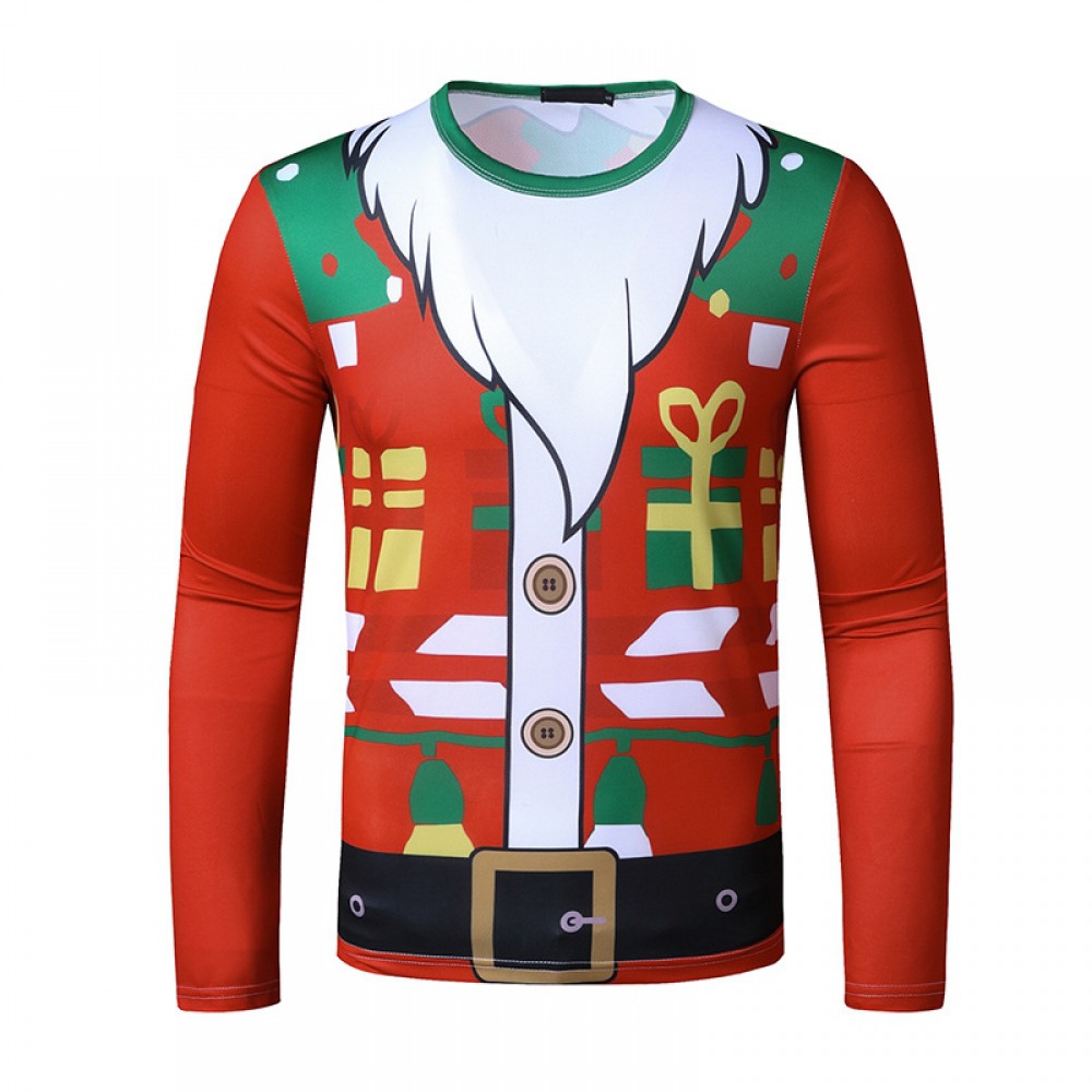 New 3D Personality Printing Fashion Men's Christmas Long Sleeve T-Shirt