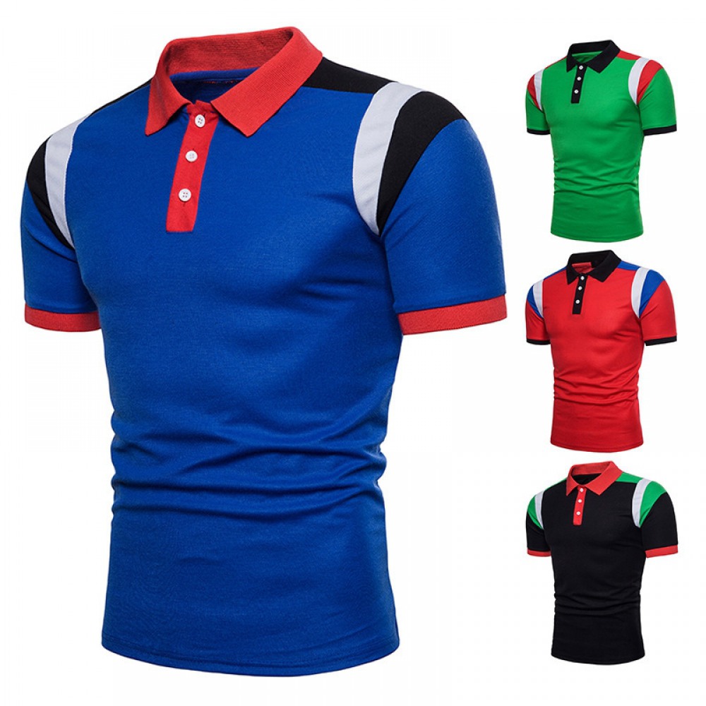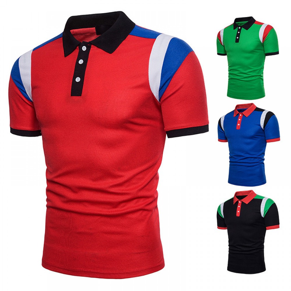 New Men's Shoulder Color Block Short Sleeve Polo