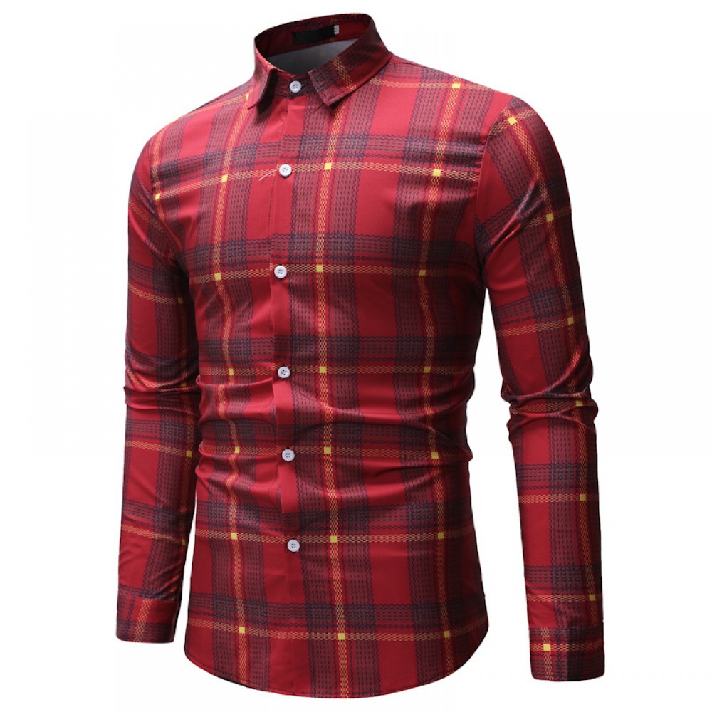 Fashion Autumn New Long-Sleeved Plaid Shirt Male Style Loose Shirt Jacket Ins Casual T-Shirt