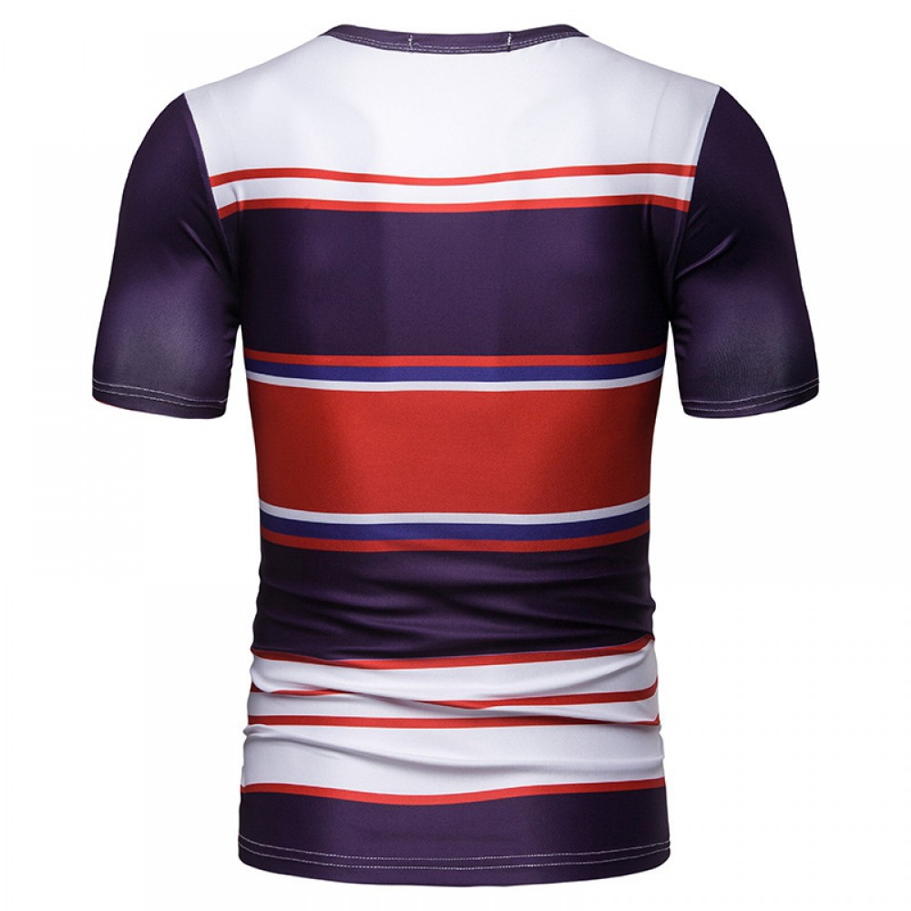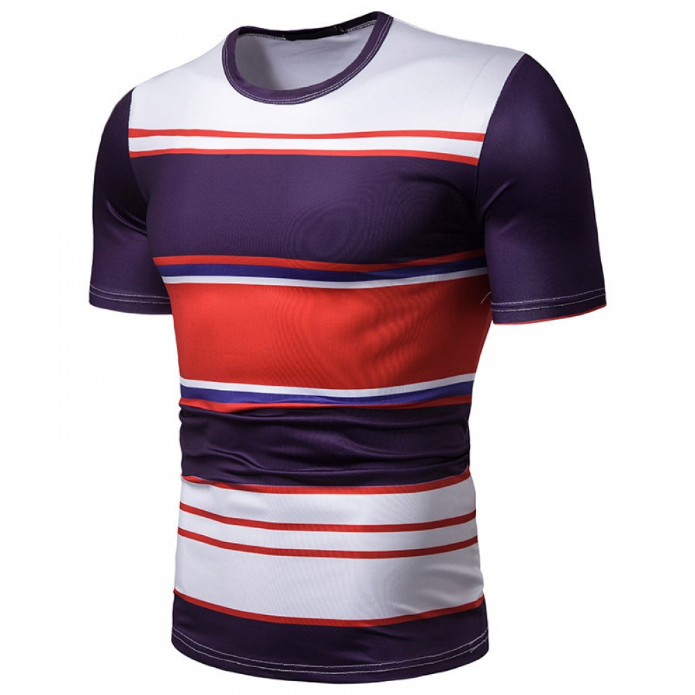 New Summer Men's Short-Sleeved T-Shirt Contrast Striped Slim Casual T-Shirt