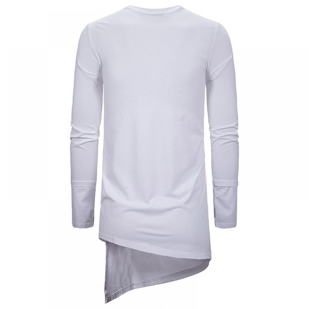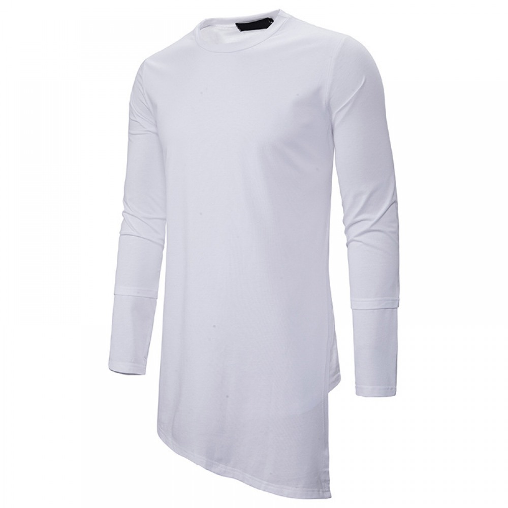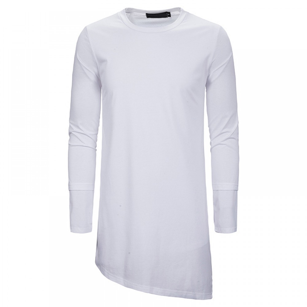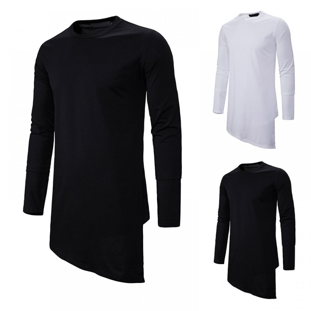 Trendy Brand Round Neck T-Shirt Men's Loose Dark Trend Irregular Hem Long-Sleeved T-Shirt